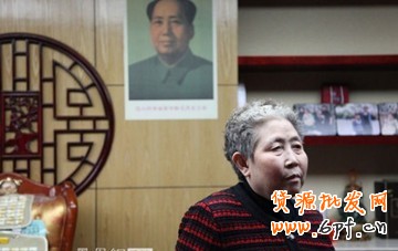 辦公桌簡單整潔,后面墻上掛著一幅毛澤東像,和那個(gè)年代成長的許多人一樣,她對(duì)毛澤東有著很深的情感,“翻身不忘毛主席,幸福不忘共產(chǎn)黨。爹親娘親不如毛主席親。”
