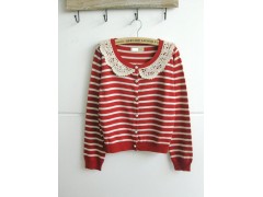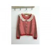2012秋季新款日式歐-力花邊領(lǐng)條紋圓領(lǐng)修身女長袖針織衫