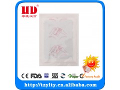 暖貼、發(fā)熱貼 13315174128趙經(jīng)理 一、 產(chǎn)品材質(zhì) 該品為片狀貼劑,是由原料層、明膠層、無(wú)紡布三部分組成的,原料層是由鐵、 石、活性炭、無(wú)機(jī)鹽、水等合成的聚合物,可在空氣中氧氣的作用下發(fā)生放熱反應(yīng)。無(wú)紡布袋的特點(diǎn)是均勻不漏、透氣性好。明膠層選用日本特有的優(yōu)質(zhì)壓敏膠涂層,粘結(jié)牢固,絕不污損衣物。 二、 作用原理 1、暖貼中的原料層可以在空氣中氧氣的作用下12-20小時(shí)內(nèi)持續(xù)不斷地釋放熱量,這種反應(yīng)過(guò)程是從一打開(kāi)真空包裝的時(shí)候開(kāi)始的。 2、人體各部份都存在局部的微循環(huán)系統(tǒng),為機(jī)體的各部份輸運(yùn)營(yíng)養(yǎng),排出體內(nèi)垃圾。中醫(yī)理論強(qiáng)調(diào)"通則不痛,痛則不通",意即當(dāng)人體經(jīng)常受寒氣侵襲,局部的微循環(huán)系統(tǒng)發(fā)生阻滯時(shí),使相應(yīng)機(jī)體既得不到營(yíng)養(yǎng),又無(wú)法排出廢物,就會(huì)產(chǎn)生痛疼,進(jìn)而引起病變。而取暖袋的持續(xù)放熱可以促進(jìn)人體微循環(huán)進(jìn)入良性循環(huán)狀態(tài),恢復(fù)正常的生理機(jī)能,從而消除疼痛,治療疾病。 三、 作用功能用途說(shuō)明: 1. 防寒保暖、熱敷身體、暖宮暖胃、經(jīng)期護(hù)理、一貼即熱,快速熱敷、消腫、止痛、活血化瘀,廣泛適用于各種畏寒癥。 2、快速緩解并消除各種畏寒疾病引起的疼痛,是關(guān)節(jié)炎、肩周炎、腰腿痛、風(fēng)濕及類(lèi)風(fēng)濕、四肢發(fā)涼、患處遇寒疼痛等疾病患者迅速止痛的即開(kāi)即用型產(chǎn)品。 3、驅(qū)寒保暖,促進(jìn)人體微循環(huán),對(duì)手、腳凍傷、骨傷、肌肉損傷等癥狀具有良好的消腫止痛功能。 4、促進(jìn)經(jīng)絡(luò)暢通,熱敷相關(guān)穴位,消除胃寒不適、經(jīng)血不通等癥狀,具有活血化瘀的作用。 5、冬季替代厚重的棉衣,為人體提供溫度保障。 四、 注意事項(xiàng) 1、 取暖袋使用時(shí)要貼于內(nèi)衣的外側(cè),不要直接貼于人體皮膚上(肌貼型除外)。 2、 取暖袋的最高發(fā)熱溫度為68℃,可持續(xù)12小時(shí)均勻放熱,晚上睡覺(jué)時(shí)不宜使用。 3、 請(qǐng)妥善保管產(chǎn)品,避免使取暖袋的真空塑料包裝袋損傷或破壞,否則產(chǎn)品會(huì)失效。