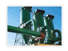 旋風(fēng)除塵器是除塵裝置的一類。除沉機理是使含塵氣流作旋轉(zhuǎn)運動,借助于離心力降塵粒從氣流中分離并捕集于器壁,再借助重力作用使塵粒落入灰斗。旋風(fēng)除塵器于1885年開始使用,已發(fā)展成為多種型式。按其流進入方式,可分為切向進入式和軸向進入式兩類。在相同壓力損失下,后者能處理的氣體約為前者的3倍,且氣流分布均勻。普通旋風(fēng)除塵器由簡體、錐體和進、排氣管等組成。旋風(fēng)除塵器結(jié)構(gòu)簡單,易于制造、安裝和維護管理,設(shè)備投資和操作費用都較低,已廣泛用來從氣流中分離固體和液體粒子,或從業(yè)體重分離固體粒子。在普通操作條件下,作用于粒子上的離心力是重力的5~2500倍,所以旋風(fēng)除塵器的效率顯著高于重力沉降室。大多用來去除.3μm以上的粒子,并聯(lián)的