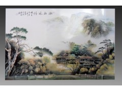陶瓷瓷板畫:在高溫?zé)频拇砂迳鲜止だL制圖案,再經(jīng)過二次高溫?zé)贫?。是家居大廳中堂、臥室墻壁、酒店廳堂、主題公園陶瓷壁畫等裝飾的首選。