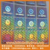 在激光全息防偽商標(biāo)上印刷各種圖案和號(hào)碼.聚全息和印刷為一體,這種產(chǎn)品立體感強(qiáng),色澤鮮艷。