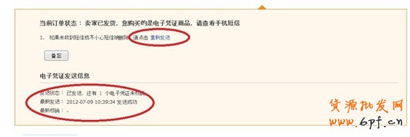 2) 買家如果未收到,則可以自助訂單操作重發(fā),每天限一次;賣家訂單里面也有此功能;