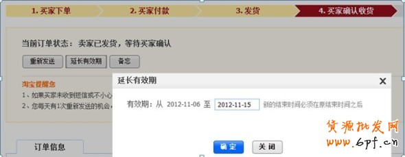 4)賣家延長訂單有效期:如果部分電子憑證需要延長使用有效期,賣家點擊訂單詳情,可進行訂單有效期的延長,有效期只能延長不能縮短;