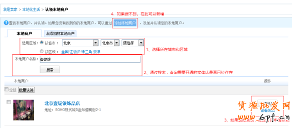 (1)選擇您的實體店所在城市和區(qū)域