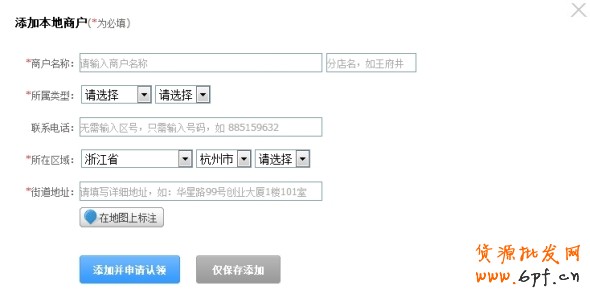(4)如果搜索不到您的實體店,點擊上方“添加本地商戶”按鈕,根據(jù)提示將實體店店名、地址等信息填寫完成后提交。