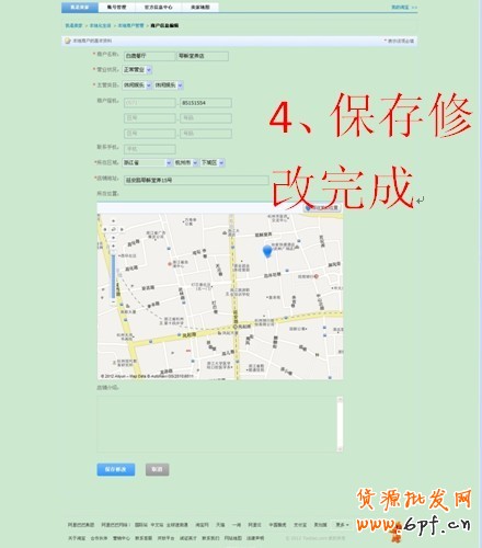 商戶編輯界面,可根據(jù)需要修改商戶信息,包括分類、電話、坐標等