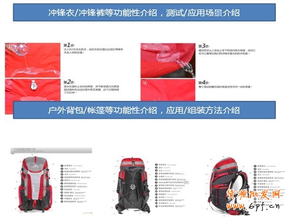 針對(duì)一些有特殊功能特性或使用場(chǎng)所的商品,進(jìn)行場(chǎng)景說明,如沖鋒衣的防水性展示、運(yùn)動(dòng)器械對(duì)室內(nèi)或戶外場(chǎng)地要求等。