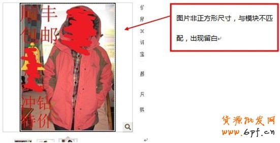即商品詳情頁面中,寶貝圖片展示框與圖片間出現(xiàn)空白部分。