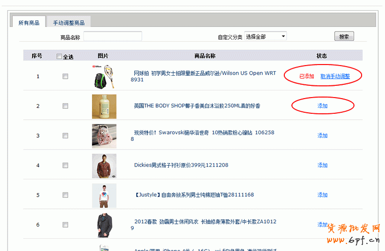 在這里添加手動(dòng)調(diào)整的商品。添加后,所添加的商品會(huì)按照您手動(dòng)設(shè)置的上架時(shí)間上架,而非按照第一步設(shè)置的自動(dòng)上架時(shí)間來(lái)上架:
