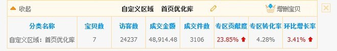 環(huán)比增長率和專區(qū)貢獻度都有很大提升,僅僅7件寶貝就為店鋪帶來的48914.48的銷量業(yè)績。表現(xiàn)非常好。