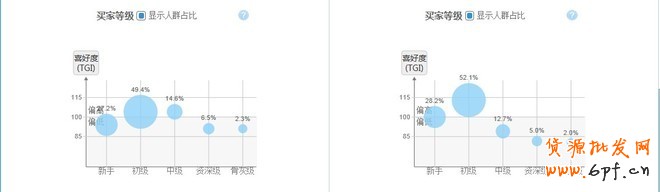 柱形是這個詞的消費基數(shù),線型全網(wǎng)的消費基數(shù)。基本上都是中層消費等級居多。
