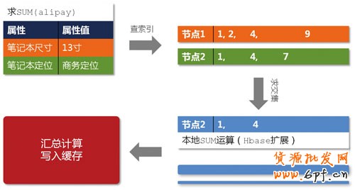 圖7用一個典型的例子描述的Prom在提供查詢服務(wù)時的工作原理,限于篇幅,這里不做詳細(xì)描述。值得一提的是,Prom支持的計算并不僅限于求和SUM運算,統(tǒng)計意義上的常用計算都是支持的。在現(xiàn)場計算方面,我們對Hbase進行了擴展,Prom要求每個節(jié)點返回的數(shù)據(jù)是已經(jīng)經(jīng)過“本地計算”的局部最優(yōu)解,最終的全局最優(yōu)解只是各個節(jié)點返回的局部最優(yōu)解的一個簡單匯總。很顯然,這樣的設(shè)計思路是要充分利用各個節(jié)點的并行計算能力,并且避免大量明細(xì)數(shù)據(jù)的網(wǎng)絡(luò)傳輸開銷。