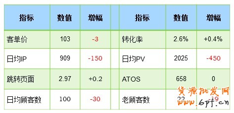 ①我建議大家一周一例會(huì)的總結(jié)方式,對(duì)店鋪各個(gè)運(yùn)營(yíng)指標(biāo)予以關(guān)注和總結(jié),譬如如下表格。