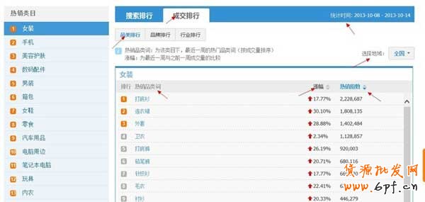 最后一個(gè)是行業(yè)排行。就是淘寶上面的類目排行。同樣要注意這個(gè)統(tǒng)計(jì)時(shí)間。