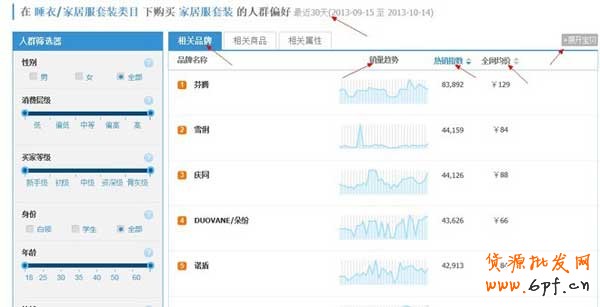 我們往下看,依舊要注意統(tǒng)計(jì)時(shí)間,和字段。這里有趨勢(shì),熱銷指數(shù)和均價(jià)。是相關(guān)品牌的情況。