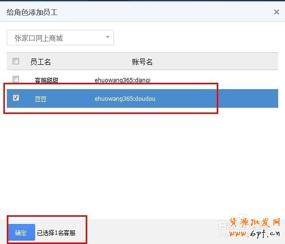 6.在出現(xiàn)的對(duì)話框就可以出現(xiàn)可選擇的員工,選擇你要授權(quán)的裝修美工即可