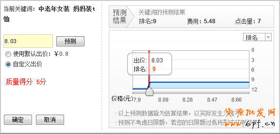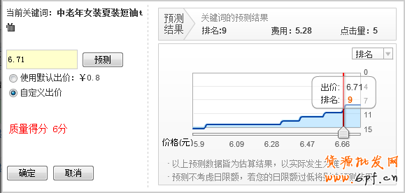 這個方法我是用其他一款商品做的測試,說下我的做法,這次投放地域沒做更改,少量地區(qū)沒做投放,如圖一,根據(jù)數(shù)據(jù)魔方找出相對精準的詞來添加,寬泛詞丶熱詞不要,例如女裝丶服飾丶夏裝丶恤衫等,競爭大,又不精準,大概添加了175個詞,根據(jù)手頭的資金決定每隔3小時左右加價0.05元慢慢養(yǎng),初期是有效果得分由原來的低分慢慢上去了,當然10分還是沒有的,8分9分很多,尤其是6分的以上的,期間也沒刪過詞,也沒調(diào)排名,后來因為轉(zhuǎn)化太低,款式選錯,所以就直接刪除了