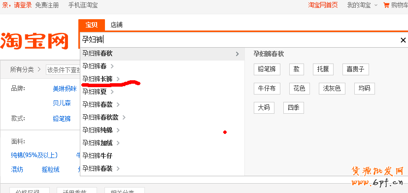 從上面的分析我們可以看出:如果我們是一個顧客,要搜索孕婦褲,當(dāng)我們打出三個字孕婦褲時,下拉框會自動顯示出來,所以我認為孕婦褲子不是首選,就算寫也是“孕婦褲子 長褲”這個詞
