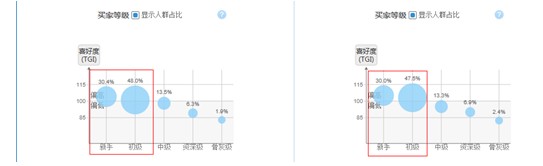 有這么一句話:新手和初級買家對于小賣家而言,就像是天使一樣。為什么會這樣說呢?因?yàn)榇罅康某跫壻I家和新手買家還是網(wǎng)購“菜鳥”,這些人也許還不懂什么是人氣丶信譽(yù)丶DSR評分,也分不清什么是天貓丶皇冠丶B店C店啥的,如果是骨灰級買家和資深買家,也許他們對心級賣家多看一眼的耐心都沒有。所以,當(dāng)我們發(fā)現(xiàn)某個(gè)詞購買的人群以新手買家為主的時(shí)候,尤其是新手賣家應(yīng)該好好的注重這個(gè)詞。