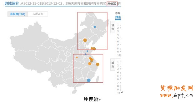所以投直通車的時(shí)候,我們一定要做好數(shù)據(jù)分析,不然你有錢排在上面都沒人去點(diǎn),我們一定要根據(jù)自己所在的類目去做好數(shù)據(jù)分析,去尋找我們的目標(biāo)客戶群體到底在哪些地方。再給大家舉個(gè)例子,“座便器”和“馬桶”是同樣的東西是吧,但是南北語言的差異,不同的地方叫法也是不一樣的。所以在投直通車的時(shí)候,我們根據(jù)自己產(chǎn)品的叫法特點(diǎn),也需要做去做地域分析,不同的地域關(guān)鍵詞的投放策略也是不一樣的。如圖: