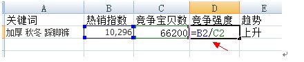 競爭強度該怎么算呢?競爭強度其實就是等于:熱銷指數(shù)/競爭寶貝數(shù),數(shù)值越大則表明競爭越小,數(shù)值越小則表明競爭越大。如圖: