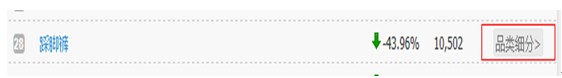 在“成交排行”下面有三個分類,大家可以一個一個點開來看下,我們可以看到在大的類目下面有小的子類目,點開看的話我們就可以觀測到每個品類的發(fā)展趨勢,我們就可以根據(jù)其發(fā)展趨勢來指導我們店鋪的運營。