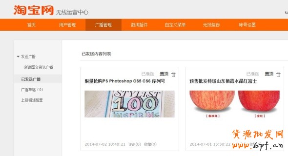 (1)進(jìn)入淘寶無線運(yùn)營中心,進(jìn)入"廣播管理"