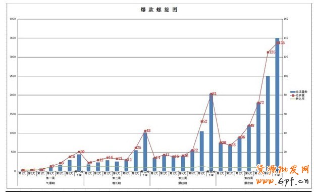 第二點(diǎn):新品七天螺旋攀升。如上圖:產(chǎn)品每一周都是螺旋上升的趨勢(shì),并且在寶貝上下架時(shí)間流量最大時(shí)的銷(xiāo)量表現(xiàn)也不錯(cuò),并且在第二、三、四周,都有持續(xù)增長(zhǎng)的形式。那么淘寶就會(huì)承認(rèn)我們的產(chǎn)品是一個(gè)即受歡迎,轉(zhuǎn)化又好的一個(gè)產(chǎn)品,自然標(biāo)題的權(quán)重就會(huì)增加,重點(diǎn)推薦,這樣就會(huì)有相對(duì)很好的排名。