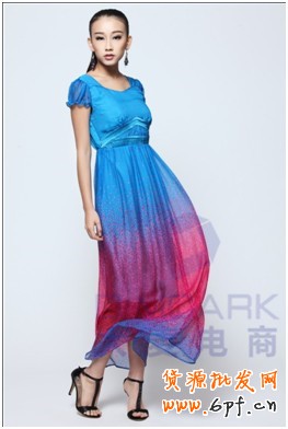 藍(lán)色是2014潮流色系。藍(lán)色代表著一切萬物的純凈,也有著冷靜、理智與美麗,具有強(qiáng)烈的春夏季節(jié)性特點(diǎn)。從產(chǎn)品本身來看,這條長(zhǎng)裙屬于春夏款,且產(chǎn)品主色調(diào)是藍(lán)色;春夏的代表顏色,首先讓人聯(lián)想到的也是藍(lán)色和綠色,因此確定海報(bào)主色調(diào)為藍(lán)色,局部過渡綠色。讓調(diào)性更為生動(dòng)。