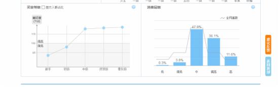 右邊的消費層次可以看出,你的類目產(chǎn)品賣的比較好的是什么價格層次的,像這個就是都是中等價位或者是中等偏高價位的人買的,所以定價的時候,為什么還要做低價呢,為什么不做中高檔價格呢?這個可以幫你定價。