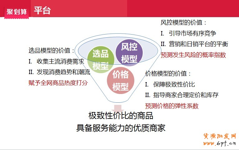 (5)“平臺”:去人工化,改為數(shù)據(jù)化運營,C2B與B2C兩種模式共同發(fā)展來銜接“聚發(fā)現(xiàn)”、“聚供應(yīng)鏈”和“聚推薦”。