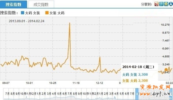 這是用淘寶指數(shù)搜索得出的結(jié)果。在搜 “大碼 女裝”和“女裝 大碼” 這2組關(guān)鍵詞時(shí),雖然關(guān)鍵詞的順序顛倒了,但搜索量是一樣的。