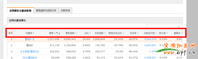 選擇關(guān)鍵詞,必須先研究關(guān)鍵詞,數(shù)據(jù)魔方最大的功能還是查詢關(guān)鍵詞,讓我們回歸其本職功能。以“雪紡衫”為例進(jìn)行搜索,我們會(huì)發(fā)現(xiàn)——