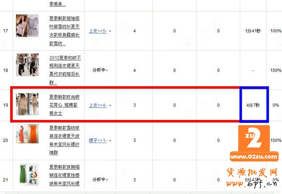 哇塞,排名第19的寶貝,居然訪問只有3個人,但是訪問時間居然有4分7秒!這不是潛力寶貝是什么,遇上這種,就著重優(yōu)化一下吧,做好SEO,也可以考慮推廣(有錢就燒車吧,盡力展現(xiàn))