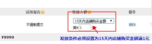 1.發(fā)放條件設(shè)置為15天內(nèi)店鋪購(gòu)買金額滿1元的商品優(yōu)先抽取。