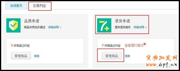 理模塊,點(diǎn)擊退貨承諾模塊下的“管理商品”按鈕