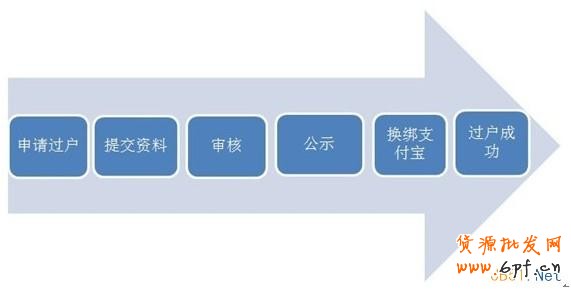 申請(qǐng)過戶——提交資料——審核——過戶公示——換綁支付寶——過戶完成