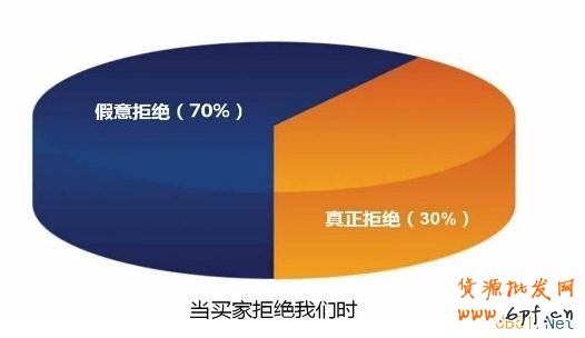 人們買東西,不管是產(chǎn)品還是服務(wù),是因為這個東西能解決他的問題.但都不會從需要解決這個問題的角度去看待這個問題.比如一個顧客要買一件衣服,通常是想打扮自己,所以來購買.當我們向顧客推薦商品時,我們的難點是:怎么確定他會花多少錢來解決這個問題.因為顧客越是覺得這個問題重要,他會愿意花的代價越大,他們成功下單的概率就會越高.所以遇到買家拒絕我們的產(chǎn)品,我們需要面臨的問題就是:需要向買家解釋他花錢買我們的商品是值得的.而在我們向買家推銷一個商品的時候,經(jīng)常會被拒絕.顧客的拒絕,其實是一種機遇,應(yīng)當致力于把它轉(zhuǎn)變成另一次銷售. 作為客服,我們經(jīng)常會犯的錯誤就是,分不清楚顧客是真的拒絕還是假的拒絕,也沒有意識到這兩者之間有什么差別.其實客服假意的拒絕是釋放的煙霧彈,目的是好好談條件,迫使客服適當?shù)淖尣?所以重要的是,我們?nèi)绾巫R別真正的拒絕和故意設(shè)置的障礙.兩者的差別十分重要,故意設(shè)置的障礙是可以消除的.這就需要我們的談判技巧.而真正的拒絕,我們無法說服.