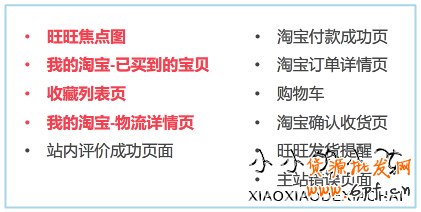 淘寶直通車定向推廣目前整合了淘寶站內(nèi)及站外兩部分展現(xiàn)資源。淘寶站內(nèi)展現(xiàn)位置主要集中在買家瀏覽量較大的熱門頁面,例如:旺旺每日焦點-熱賣丶我的淘寶-已買到的寶貝丶我的淘寶-競拍中的寶貝丶淘寶資訊頁面等。淘寶站外的十多家優(yōu)質(zhì)的合作網(wǎng)站中也有定向推廣的展現(xiàn)資源