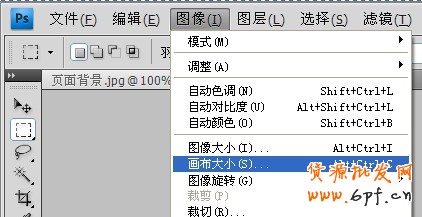 2::打開圖片后,點(diǎn)擊PS工具欄中的“圖像”--“畫布大小”,如下圖