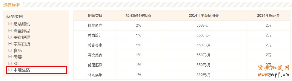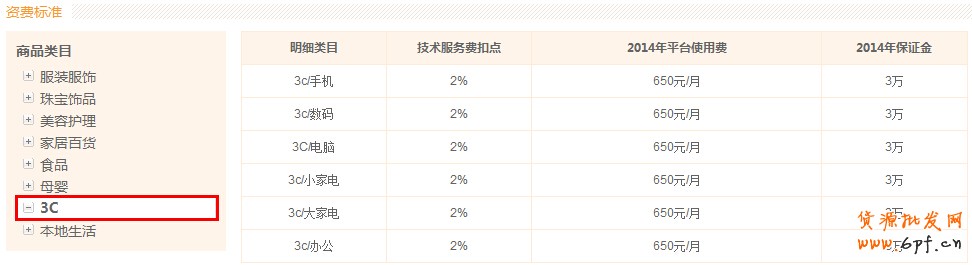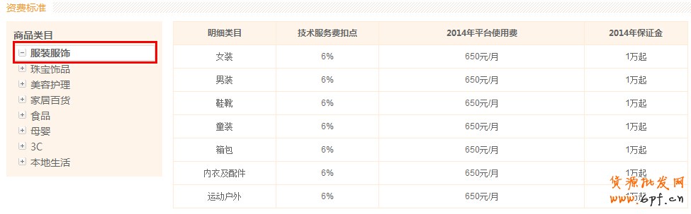 下圖為各類目商品的資費(fèi)標(biāo)準(zhǔn):