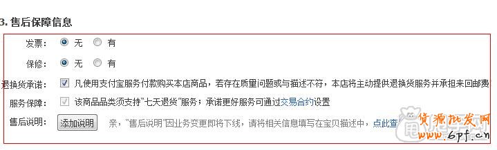 9、關(guān)于店鋪對(duì)于買家的一些承諾或者一些其它服務(wù)嗎,比如發(fā)票、保修等,如圖