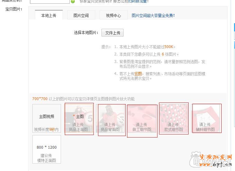 5、上傳寶貝的圖片,賣家可根據(jù)要求來上傳寶貝圖片;