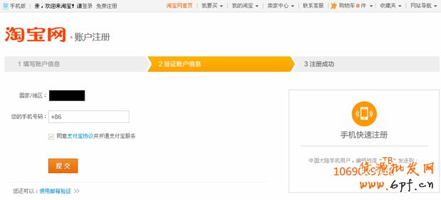 填寫(xiě)手機(jī)號(hào)碼,必須是未被注冊(cè)使用的手機(jī)號(hào)。 進(jìn)入該頁(yè)面,說(shuō)明之前提交的注冊(cè)信息已成功,此時(shí)您已有了一個(gè)未激活的淘寶賬戶,需要輸入手機(jī)收到的校驗(yàn)碼進(jìn)行激活,若您不小心把該頁(yè)面關(guān)閉了,不用著急,進(jìn)入登錄頁(yè)面輸入賬戶名和密碼,點(diǎn)擊“登錄”該頁(yè)面又會(huì)出現(xiàn)。 詳細(xì)<<