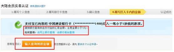 這里,就看出用于實名認證的銀行卡開通網銀是必要的了,確認金額的時間,可以不用出門了。支付寶給打款之后,會有一個如下圖的提醒: