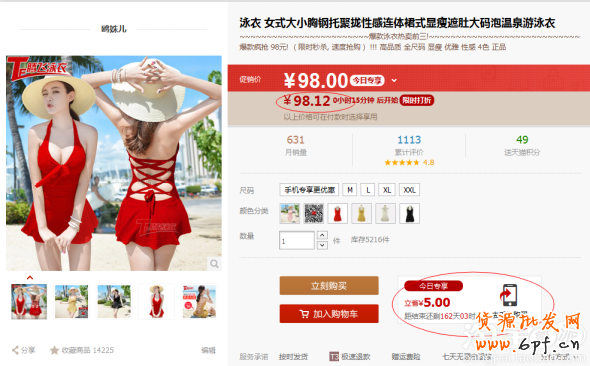 這里我設(shè)置的價(jià)格用到兩個(gè)軟件,一個(gè)是天貓營(yíng)銷中心的特價(jià)寶,一個(gè)是促銷管理里面的限時(shí)打折。我在特價(jià)寶上設(shè)置的價(jià)格是最低價(jià),這樣才會(huì)在左下角顯示手機(jī)下單立省5。