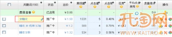 以睡衣為例,全店10款寶貝的話,盡量選擇不同類型的寶貝去推廣,避免出現(xiàn)太多重復關鍵詞。添加標題的時候也可以添加不同的屬性詞,比如條紋、卡通、性感、情侶等,這樣系統(tǒng)推薦的詞就會有區(qū)別。還有用淘寶直通車選詞助手找詞的時候,輸入的關鍵詞也可以區(qū)分開來,比如用“卡通睡衣”“情侶睡衣”“性感睡衣”“睡衣秋”“睡衣夏”等等去找詞。