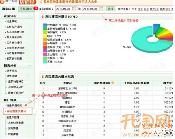 登陸量子-點擊推廣效果下面的淘寶搜索關鍵詞,下載關鍵詞報表。(日期可以根據(jù)需要選擇一個月、最近七天等)