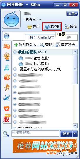 | PS:萬一您的“E客服”子帳號左邊沒有如上圖的小蜜蜂圖標,則檢查您使用的版本是否夠新,或者去旺旺首頁下載最新版旺旺吧:) | ||||